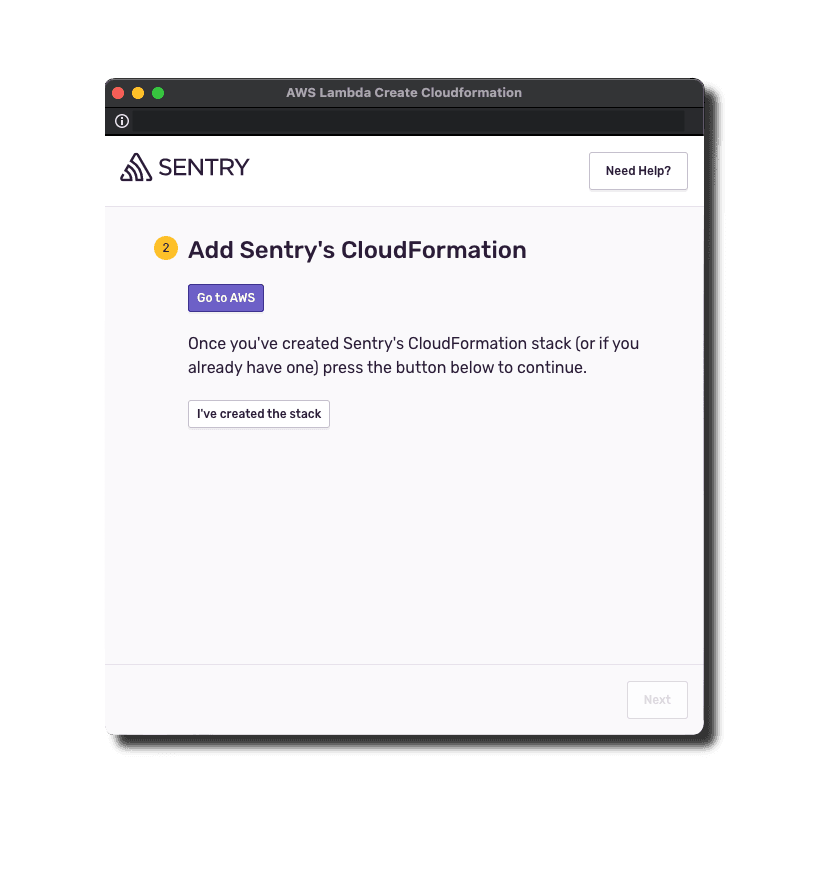 6. Wait for the stack to be created. Once it's confirmed and the status changes to Create Complete, click I've created the stack in the Sentry popup.