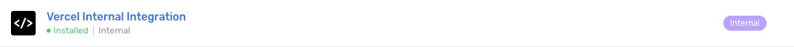 The installation created an internal integration to generate an auth token used in building releases. If the Vercel internal integration is deleted, your Vercel integration will stop working.